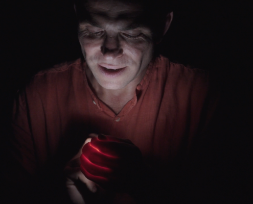 In scena, un attore e la sua ombra su uno sfondo bianco che giocano e interagiscono creando numerosi personaggi e mondi immaginari. Un linguaggio visivo onirico, poetico e ironico che parla a tutte le età con il linguaggio magico